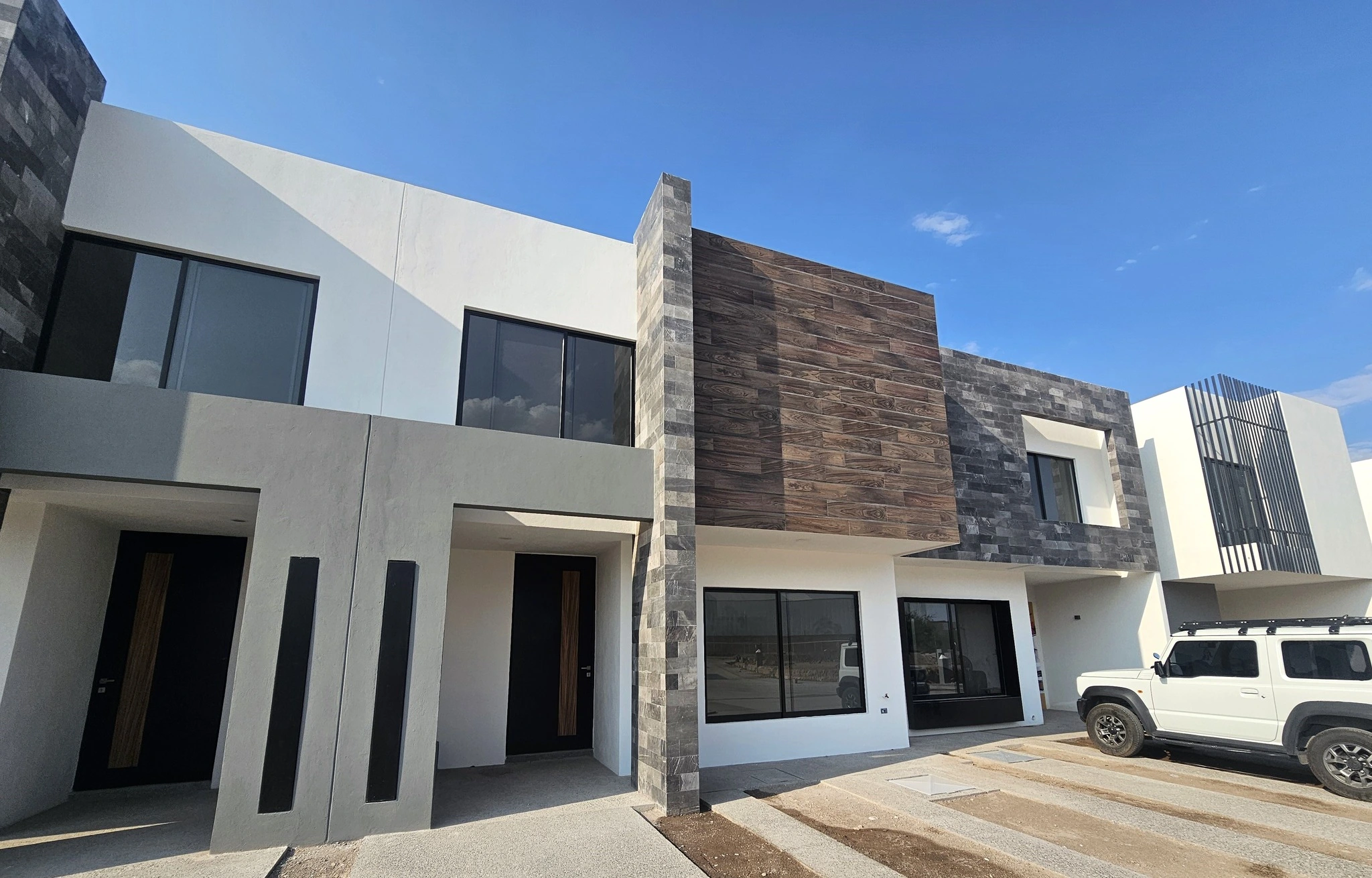 Este proyecto realizado por Escalaxa en el desarrollo residencial "Puerta Natura" en San Luis Potosí consiste en una vivienda de 166.4 m² de construcción sobre un terreno de 120 m². Es la vivienda mas grande a la venta en este desarrollo